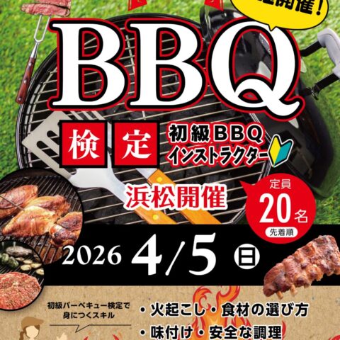 4月5日(日)初級BBQ検定開催のご案内【静岡県浜松市|MIYAKODA.BBQ.FIELD】